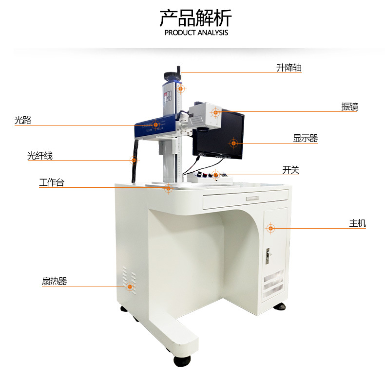 光纖激光打標機采用光纖激光器,振鏡掃描系統,輸出功率穩定,光學模式好,光束質量優異、打標速度快,效果好,效率高,能充分滿足客戶大批量生產需求。